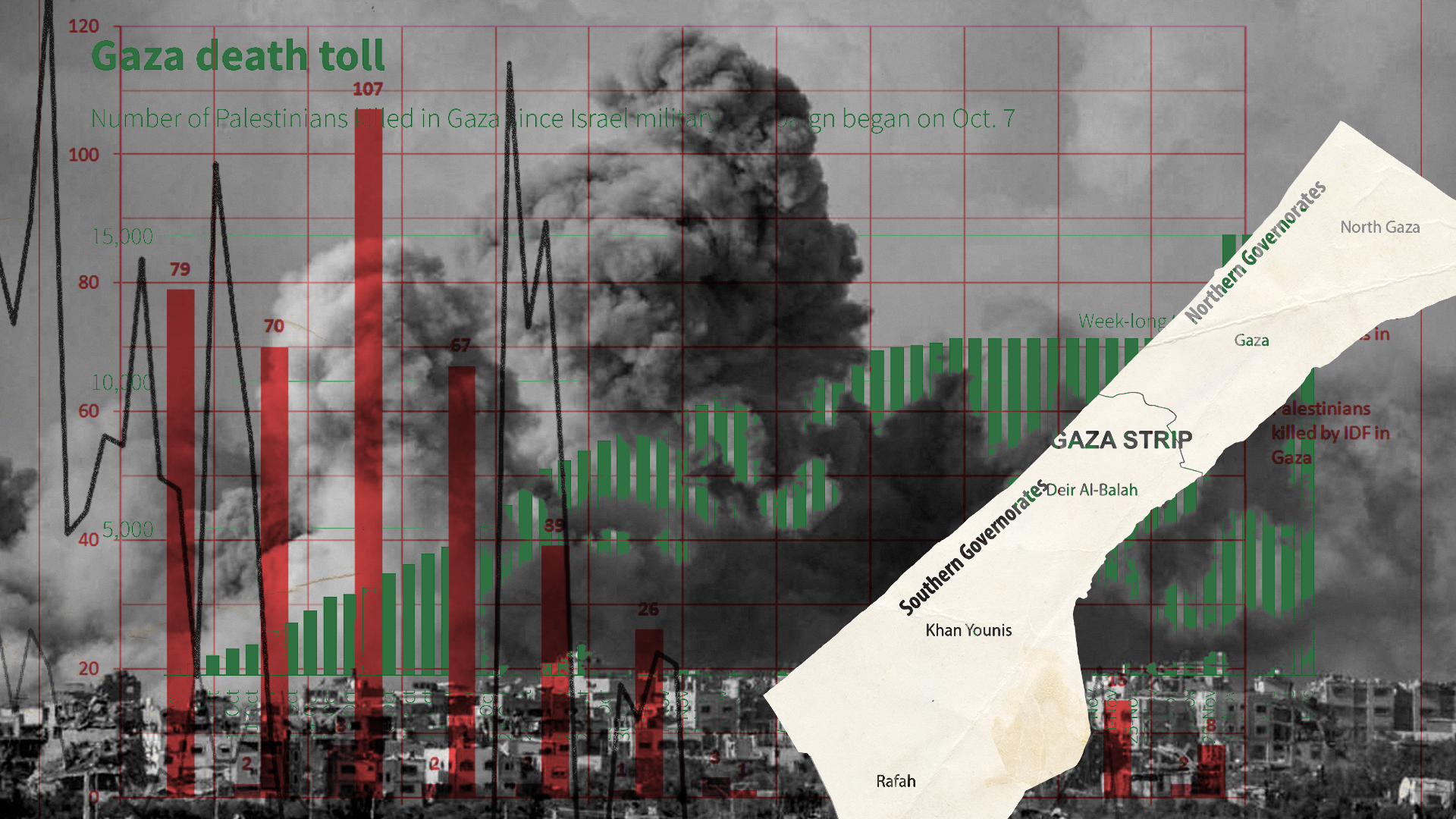Durante la pandemia da coronavirus ci siamo abituati a osservare infografiche piene di numeri che venivano aggiornate quotidianamente: abbiamo vissuto il bollettino prima con angoscia e timore crescente per quello che stava accadendo, poi con il bisogno di di capire il significato dietro ogni cifra. Da qualche mese stiamo di nuovo condividendo e commentando un tragico bollettino, quello delle vittime dei bombardamenti di Israele su Gaza. L’ufficio statistico nazionale palestinese aggiorna periodicamente il numero di morti, e i media li usano per creare grafici e infografiche che hanno spesso lo stesso effetto delle dashboard sul covid a fine emergenza: invece di informare, generano apatia. Quindi si fanno altri maldestri tentativi per ridestare l’attenzione dei lettori, per esempio confrontare due conflitti molto diversi come quello tra Ucraina e Russia e tra Israele e Gaza: niente di più fuorviante.Contare i morti in una guerra è una questione complessa, difficilmente neutrale. Se analizziamo la modalità di comunicare e raccontare i dati da parte del ministero della salute di Gaza e del ministero della difesa ucraino, vediamo che si tratta di una scelta politica: il primo elenca i morti del proprio popolo, il secondo le sconfitte dell’esercito nemico.