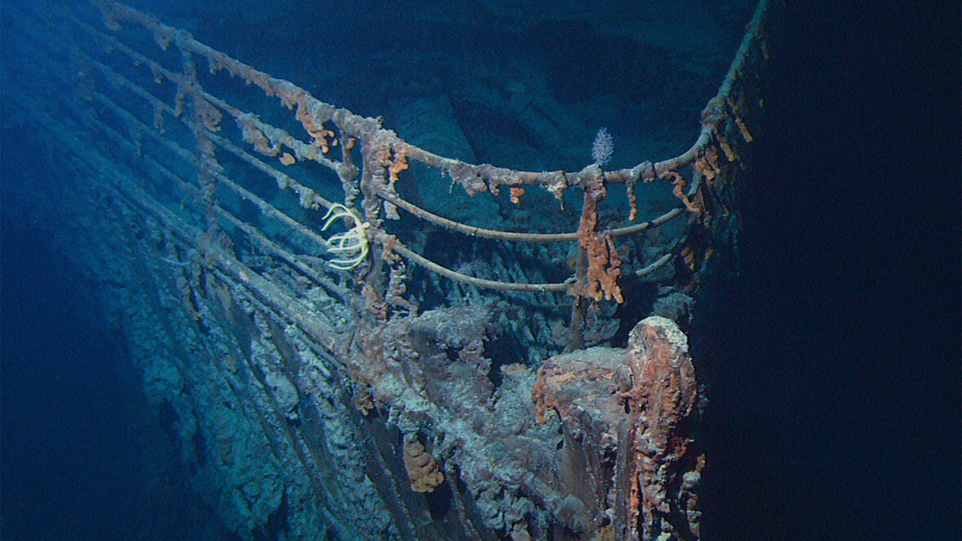 Tutti si pigiano contro il vetro per ammirare i fianchi del relitto ornati da colonne di alghe che si protendono ondeggiando verso di loro, come a salutarli, e ciascuno degli uomini si concentra per catturare con lo sguardo quanti più dettagli possibili, vorrebbero poter guardare il Titanic nella sua interezza ma le condizioni non lo permettono e allora si concentrano per ricordarsi del manto di corallo che avvolge ogni centimetro della nave che gli viene offerto e perdersi nell’eccezionale sensazione di essere insignificanti ed estranei a quel mondo.